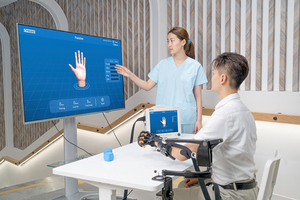 Syrebo Hand Rehabilitation Robot SY-HR03E combines flexible robotics technology and neuroscience.It can provide multiple training modes such as passive training, task-oriented training, assistance training, resistance training, bilateral mirror training, and active game training,comprehensively covering the period from stroke paralysis to rehabilitation.shop now